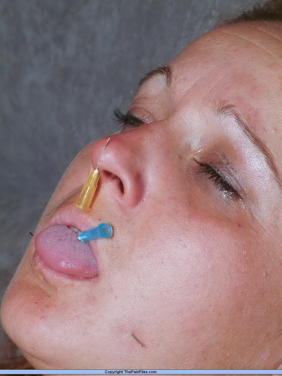 Facial needle pain and extreme bdsm piercing punishment of kinky slave Gina |